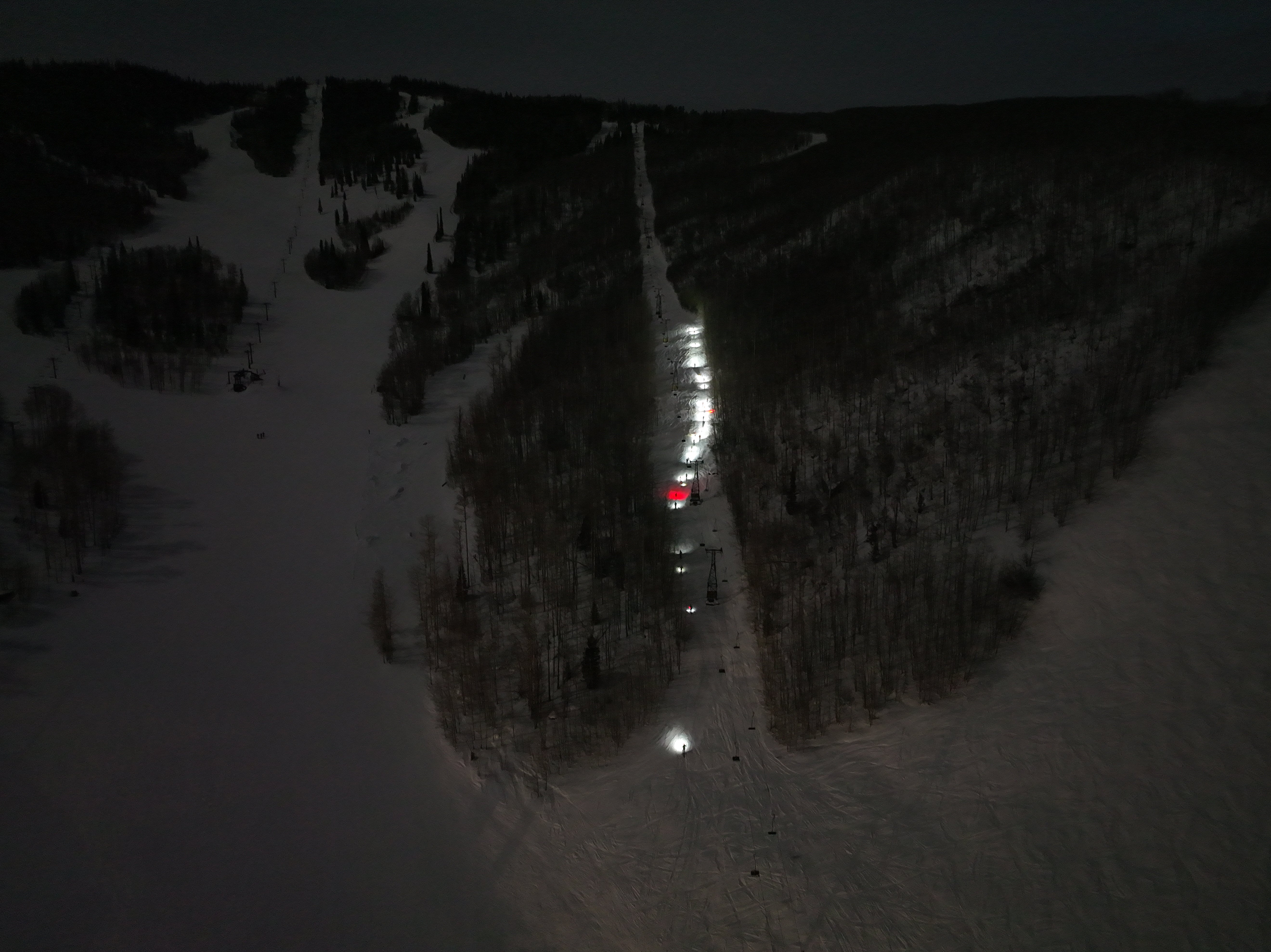 The descent goes down an easy blue run with one steep pitch to test your headlamp skiing skills just a little bit. From the bottom of this descent go into the lodge for the most delicious and affordable beer in the Roaring Fork Valley and a free cookie, or be brave in the long course and ascend the mountain from bottom to top under the Primo chair.