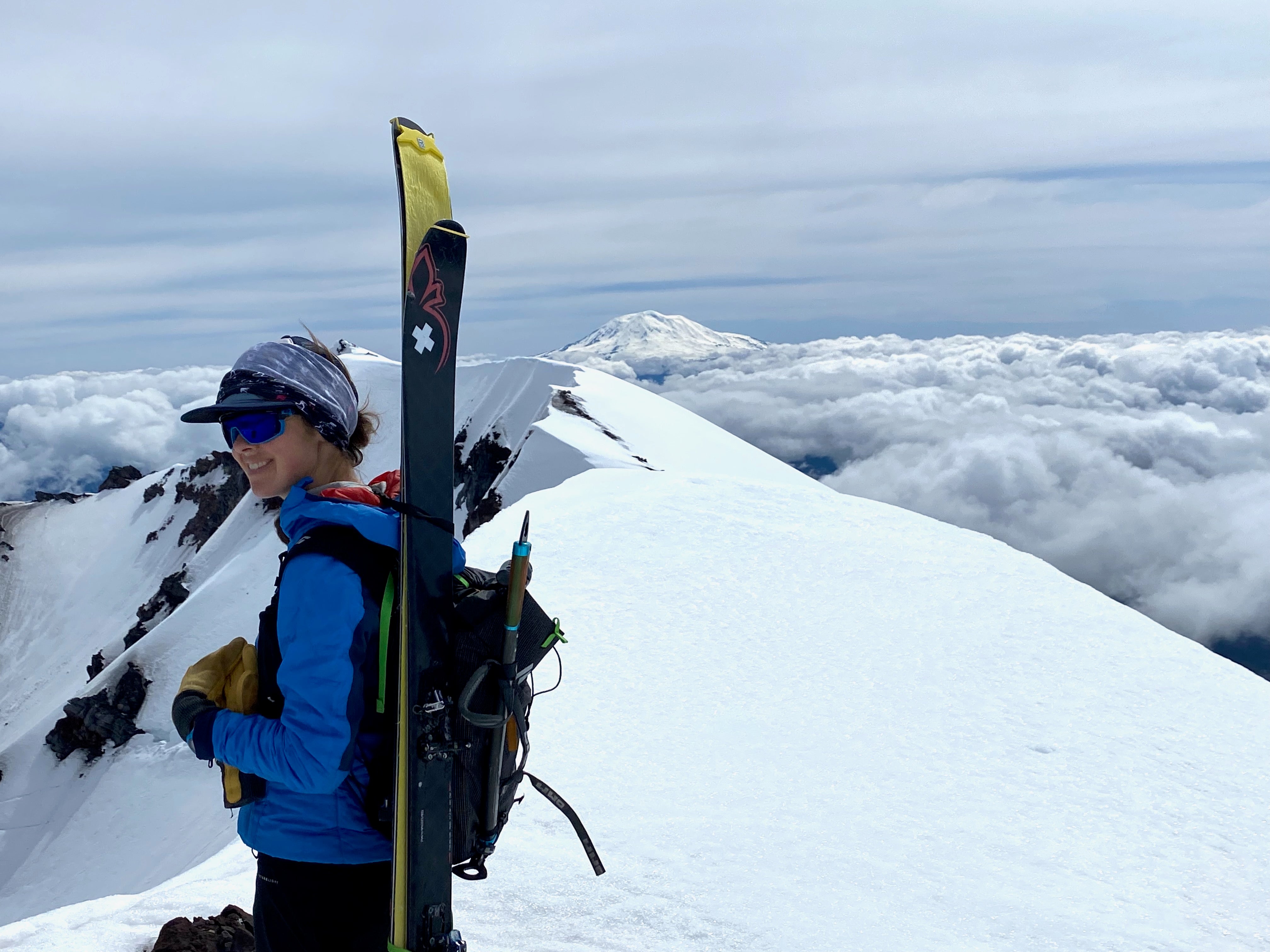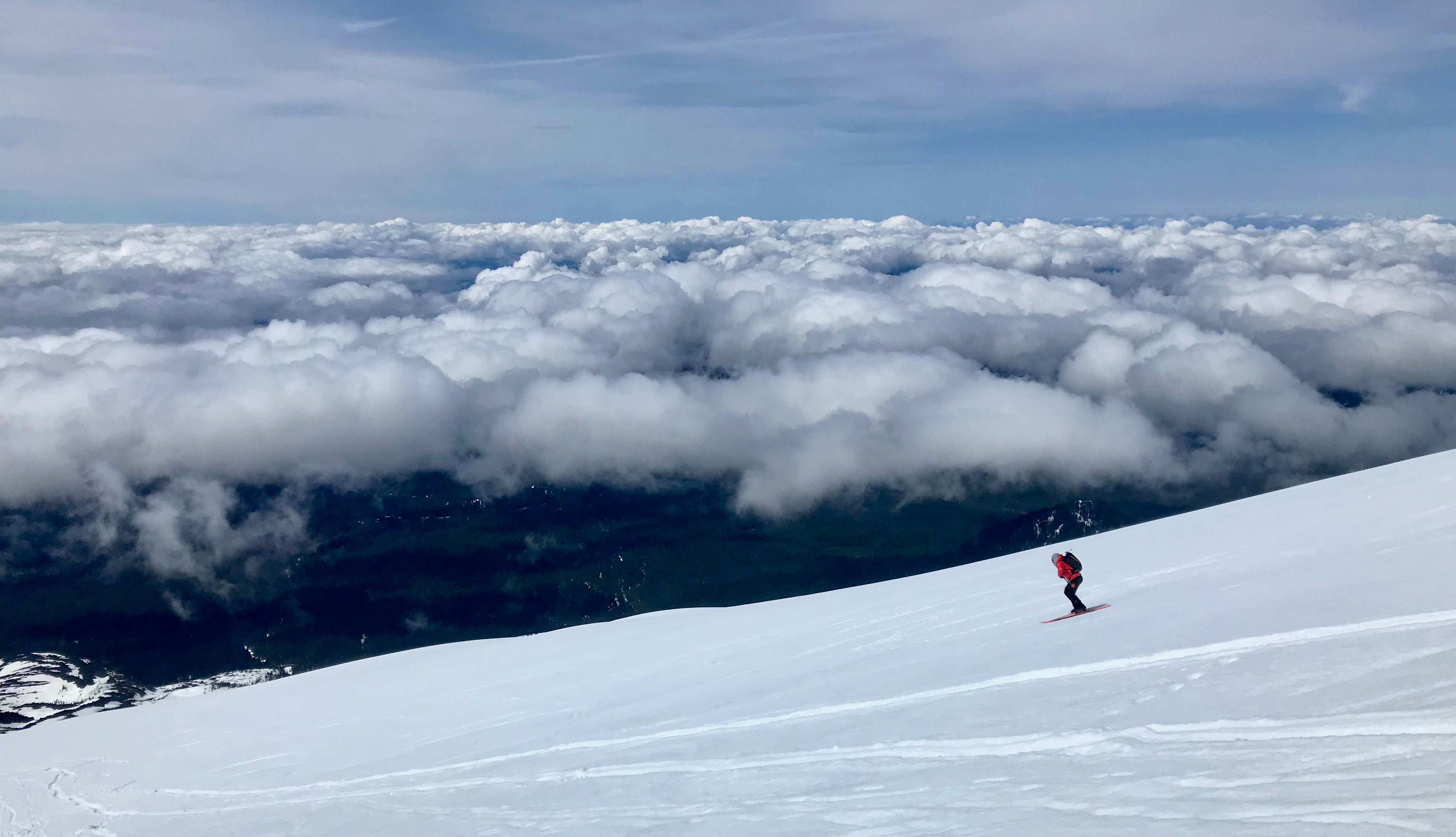 Although lower than other volcanoes, 5500 feet of ascent is nothing to scoff at. Pulling far past the halfway point, the snow remained soft, and our motivation began to collapse just as the faint skin track continued to crumble at our feet. At the most opportune time, Mount Adams began to break through the clouds to our east, and pulled us forward. As we approached the crater rim, the pitch steepened for a few hundred feet and forced us into the climbers' boot pack until giving way to mellow ridge skinning to the summit.