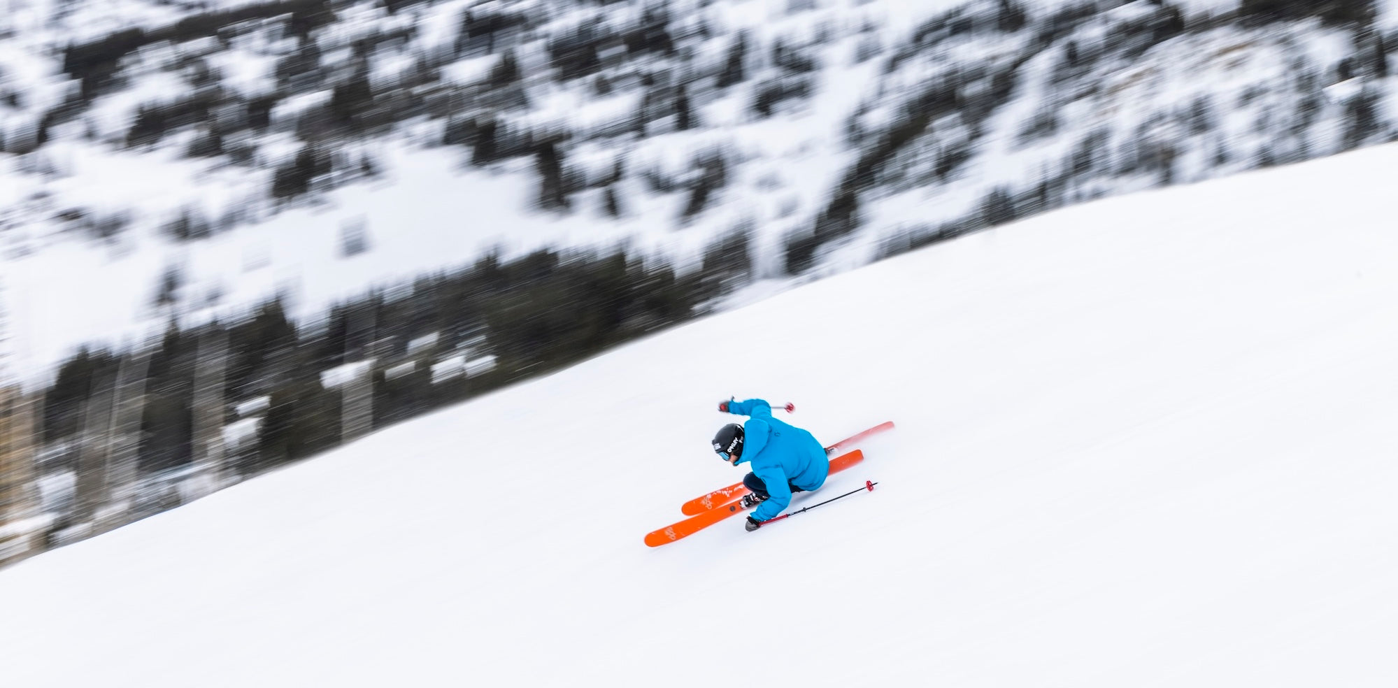 The DPS Kaizen 100's large rockered tip means this ski will float great in powder, but it can still wiggle its way through trees and moguls or arc turns on that beautiful morning corduroy.